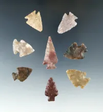 Set of 8 Nebraska Arrowheads, largest is 1 7/16". Ex. Bob Roth Collection. | NEBRASKA | 55.00 | |