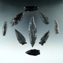 Set of 10 assorted arrowheads found in Humboldt Co., Nevada. Largest is1 13/16". |