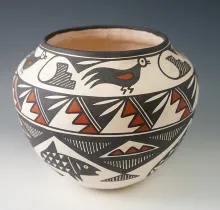 Beautifully decorated 6 1/4" by 7 1/4" wide contemporary Acoma pottery vessel - New Mexico |