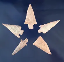 Nice assortment of five Arizona/New Mexico Arrowheads, largest is 2 1/16". | NEW MEXICO | 30.00 | |