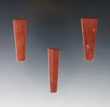 Set of three trapezoidal micro-drilled red slate and Catlinite beads. Townley-Read site, NY. |