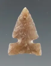Thin and well flaked 2 5/8" Triangular Knife made from beautiful semi translucent Flint - ND. |