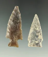 Pair of heavily patinated arrowheads found in North Dakota, largest is 1 7/8". |
