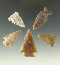 Set of five assorted arrowheads found in North Dakota, largest is 1 9/16". |