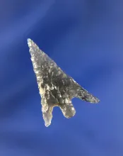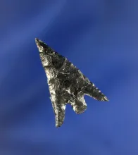 1 3/16" Columbia Plateau that is nicely flaked from Obsidian with one restored ear. Found in Oregon. |