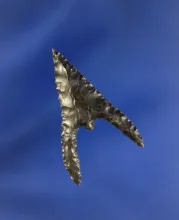 2 1/4" Elko Corner Notched made from heavily patinated Obsidian, found in Oregon. |