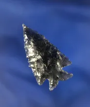 2 3/16" heavily patinated Obsidian Buchanan Eared found in Oregon. |