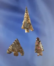 Set of three Columbia River Arrowheads, largest is 1 3/8" found near Priest Rapids. |
