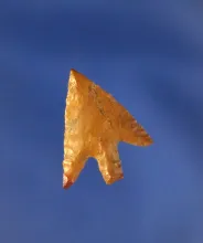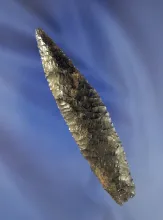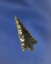 1 5/16" serrated Obsidian point found in Oregon. Ex. Vern Emil, Gordon Erspamer collections. |