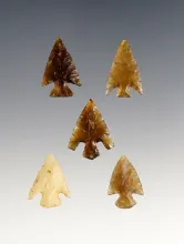 Set of 5 Plains Side Notched Points that are well made from Knife River Flint. Dakota. |