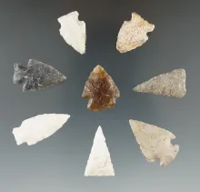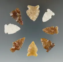Set of 8 assorted arrowheads found in Eastern South Dakota, largest is 1 1/8". |