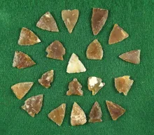 Group of 20 small arrowheads found in the Dakotas, largest is 11/16" Most are Knife River Flint. SOUTH DAKOTA 70.00