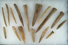 Large group of bone artifacts found at a site in Tennessee, largest is 4 3/4". |