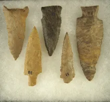 Set of five Tennessee arrowheads found near Dickson, largest is 3 1/2". TENNESSEE 40.00