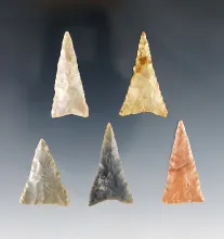 Set of 5 well made Triangle Points found in the Kentucky/Tennessee area. The largest is 1 1/2". |