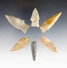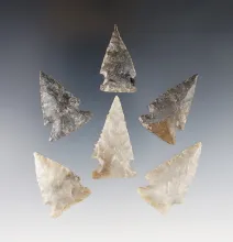 Group of six Texas dart points in nice condition. Largest is 2 5/8". |