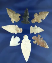Set of eight assorted Texas and New Mexico Arrowheads, largest is 1 15/16". |