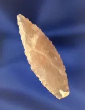 2 3/16" Translucent Serrated Leaf Point found in Wilson Co., Texas. TEXAS