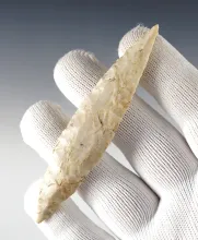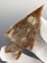 1 1/16" Shumla point - beautifully translucent Chalcedony. Texas. Museum Deaccession. TEXAS 60.00