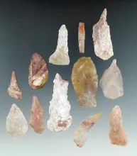 Set of 12 assorted points found in Utah, largest is 1 3/4". UTAH 25.00