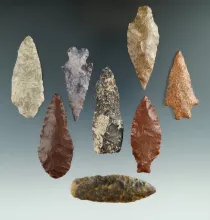 Group of 8 assorted arrowheads found in Utah, largest is 2 1/4". |