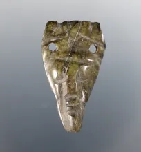 1 3/8" Mixtec Double Hole Head Pendant made from Greenstone, recovered in Mexico. |