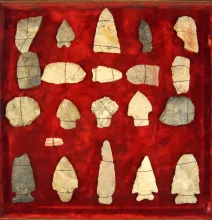 Frame of Flint Artifacts tied to a board found in the 1940's near Fredericktown, Knox Co., Ohio. |